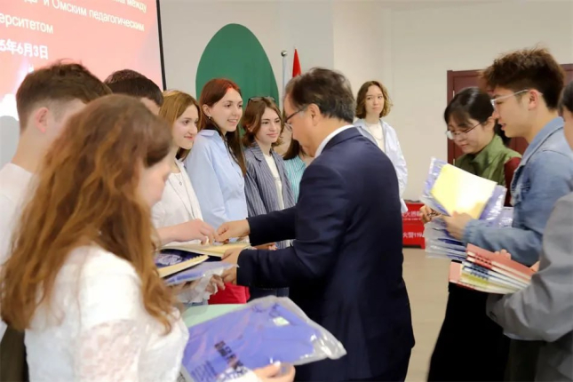 In conclusion, Guo Wei presented educational materials and university symbols. The ceremony ended with a group photo session, applause and smiles.