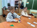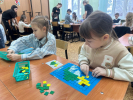 Ребята строили модели и изображения с помощью конструкторов «Геостикс» и «Пиксели», выполняли задания на размещение объектов на плоскости, складывали узоры по образцу и симметрично их дополняли.