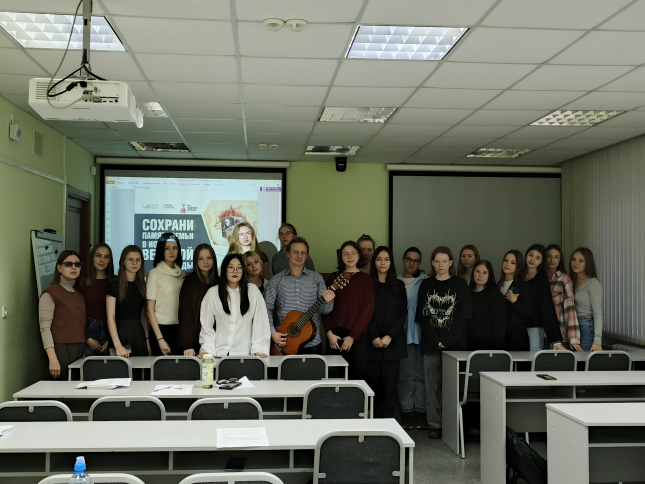 17 ноября студенты факультетов истории, философии и права; иностранных языков; экономики, менеджмента, сервиса и туризма; начального, дошкольного и специального образования; факультета искусств и преподаватели кафедры всеобщей истории, социологии и политологии по приглашению Музея Победы приняли участие в акции «Сохрани память семьи в истории Великой Победы». Акция приурочена к Году защитника Отечества.