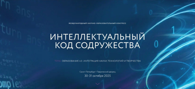 30-31 октября 2025 года в Санкт-Петербурге состоится конгресс «Интеллектуальный код Содружества», темой которого является «Образование 4.0: интеграция науки, технологий и творчества». Организаторами конгресса являются Межпарламентская Ассамблея государств – участников Содружества Независимых Государств, Совет Федерации Федерального Собрания Российской Федерации. Мероприятие будет проведено при поддержке Министерства просвещения Российской Федерации.
