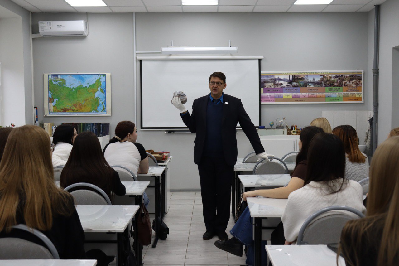 Петр Владимирович рассказал студентам о том, что даже на улицах нашего города можно найти интересные минералы для своей коллекции. Также он поделился некоторыми особенностями преподавания предмета «Окружающий мир» для начальных классов.