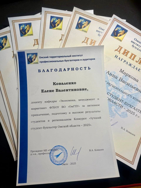 Восемь студентов факультета экономики, менеджмента, сервиса и туризма стали лауреатами регионального конкурса в номинации «Лучший студент-бухгалтер Омской области-2025»! Конкурс ежегодно выявляет самых перспективных молодых специалистов региона. Эта значимая победа является ярким подтверждением высокого уровня профессиональной подготовки, глубоких знаний и практических навыков наших студентов в одной из ключевых экономических сфер. Поздравляем победителей: Авакян Анну, Аментаеву Ранию, Маркову Анну, Казачук Полину, Кноль Диану, Цайлер Кристину, Шахову Дарью, Якушенко Веронику.