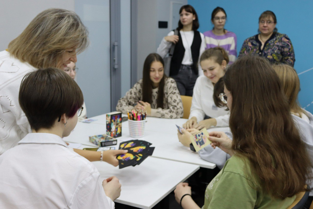 Для гостей также было организовано несколько мастер-классов. На занятии «Литературное сочинение на все сто!» преподаватель кафедры русского языка и лингводидактики Светлана Викторовна Троян раскрыла школьникам секреты успешного написания итогового сочинения и рассказала, как получить за него максимальный балл. Погрузиться в мир психологии можно было на двух площадках: завкафедрой общей и педагогической психологии Юлия Евгеньевна Шабышева на мастер-классе «Психологические арт-практики: подсказки от метафорических карт» познакомила участников с работой с метафорическими картами, а доцент кафедры психологии Елена Анатольевна Черкевич провела для гостей мастер-класс по арт-терапии, на котором рассказала об арт-технике «Автопортрет».