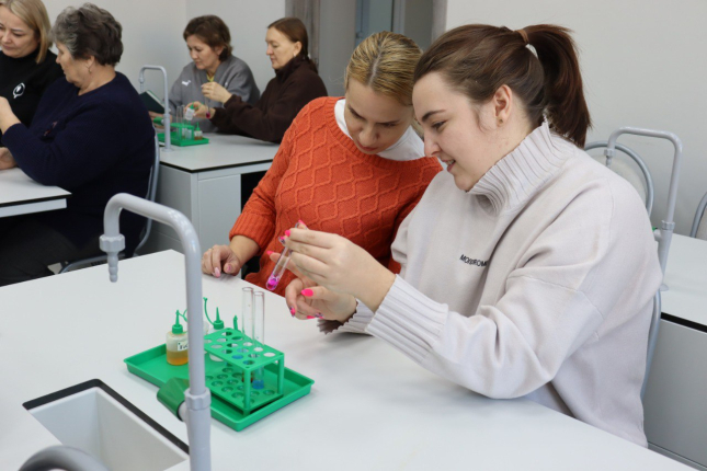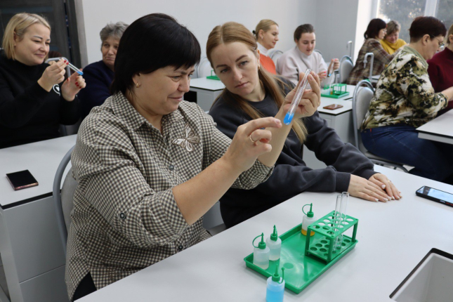 В лаборатории органической химии участники познакомились с установками по очистке веществ и фильтрованием. Кроме того, они узнали о важности инструктажа по технике безопасности и особенностях его организации. В финале встречи педагоги самостоятельно выполнили лабораторные опыты, которые в дальнейшем смогут проводить дошкольники в своих образовательных учреждениях или во время экскурсий в Технопарк.
