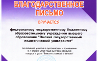 Благодарственное письмо в адрес и.о. ректора ОмГПУ Г.В. Косякова от директора по связям с общественностью «Яндекса» О.А. Манджикова.
