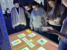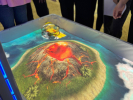 На занятиях ребята активно использовали современное оборудование Технопарка: интерактивные стол, песочницу, пол, программно-дидактический комплекс «Логомер 2». Особенно ярким моментом стало задание с интерактивной песочницей в режиме «Вулкан». На песочном поле в центре выстраивается гора правильной конической формы, на вершине горы – углубление (жерло вулкана). На постройку проецируется режим «Вулкан». На глазах игроков происходит извержение вулкана: образование и выход лавы, выброс пепла.